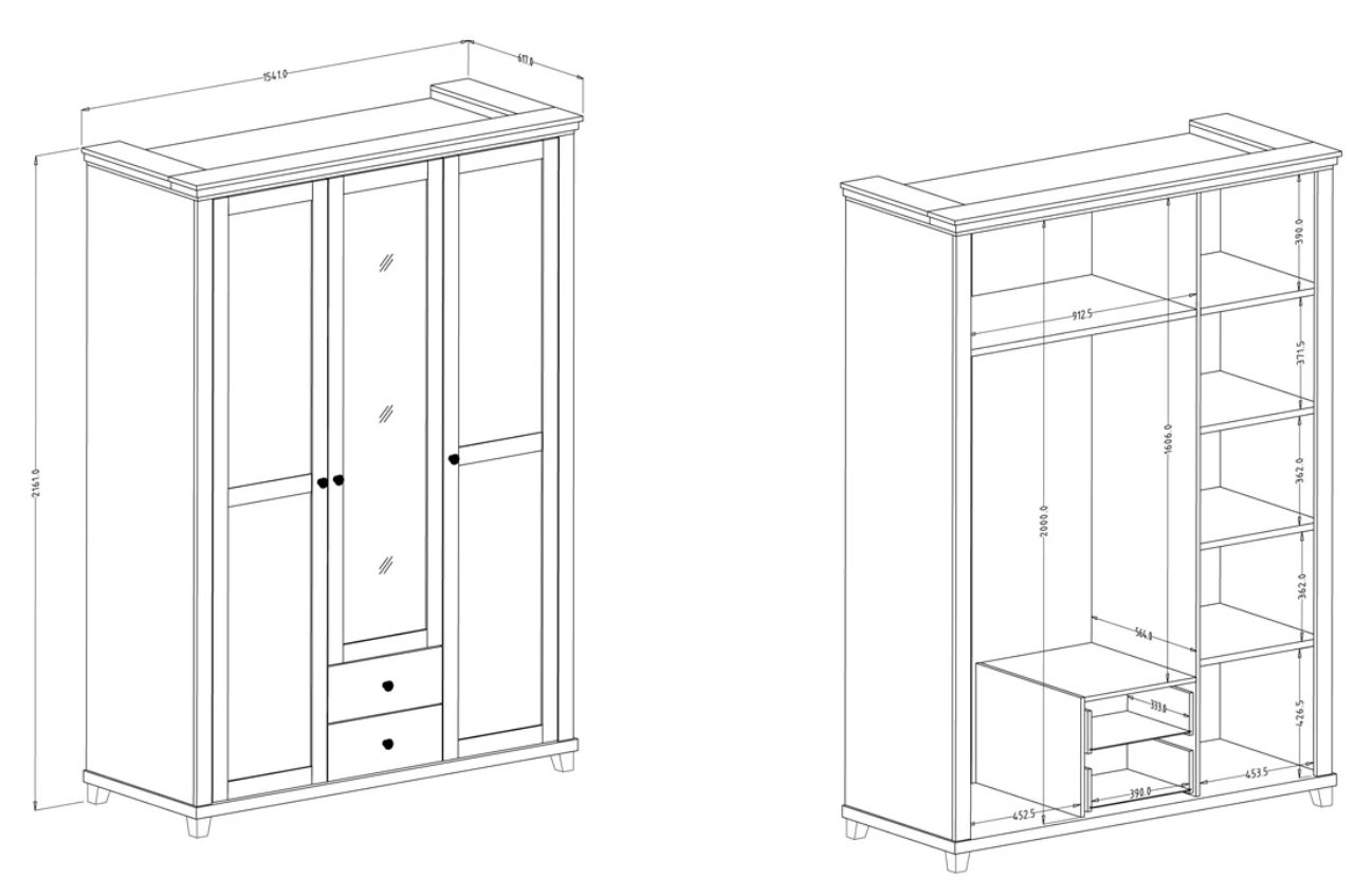 - wymiary: szer.154cm wys.216cm gł.62 cm