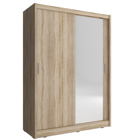 Składa się z przesuwnej części dwudrzwiowej z jednym lustrem, wewnątrz której mamy do dyspozycji półki i drążek na ubrania.