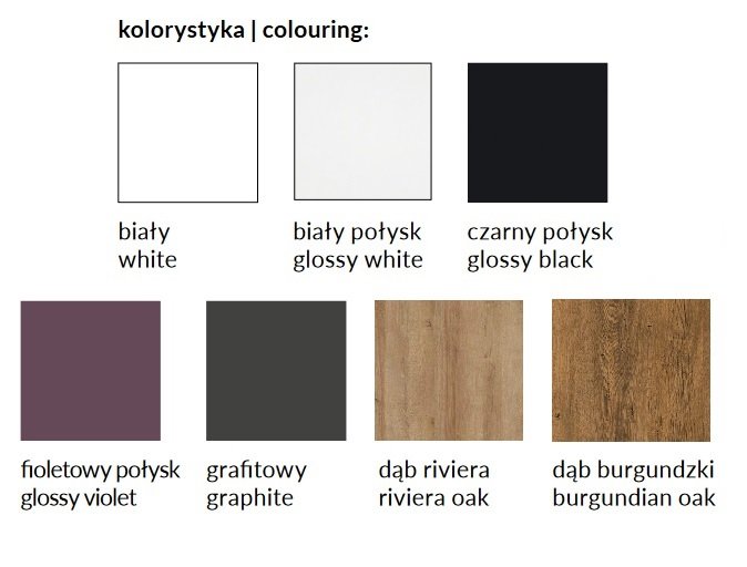 Szafa dostępna jest w kolorach i ich połączeniach: