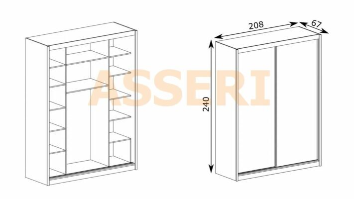 Duża oraz pojemna szafa z drzwiami przesuwnymi. Dzięki dużej ilości półek oraz szufladom możemy lepiej zorganizować ubrania i nie tylko. Na środku znajduje się drążek oraz dwie szersze półki. Stworzona z najlepszej jakości materiałów jest stabilna, prosta, zapełniająca pustą przestrzeń.