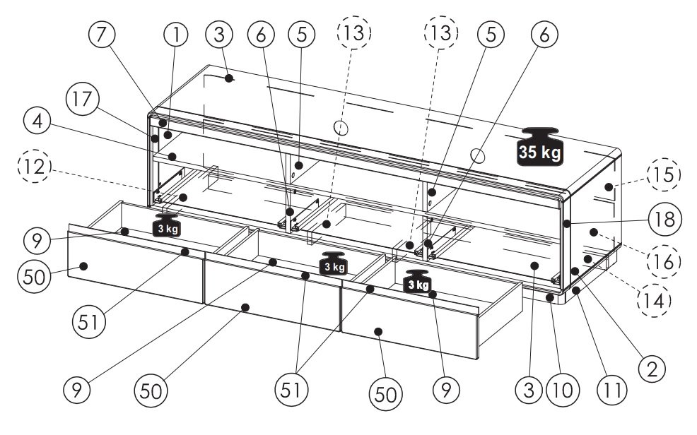 • Trzy szuflady