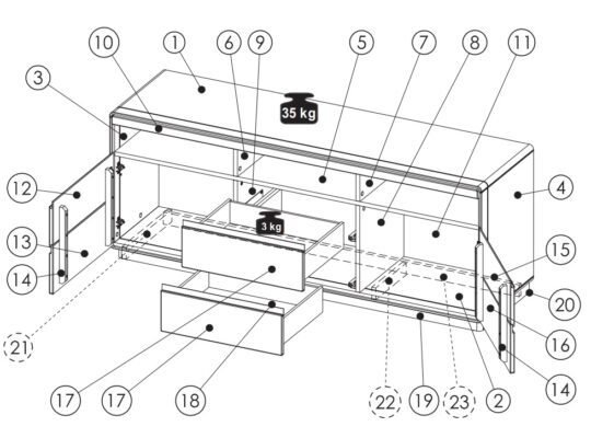 Napisz pierwszą opinię o „ATLANTA-26 dębowa szafka RTV z szufladami 180 cm”