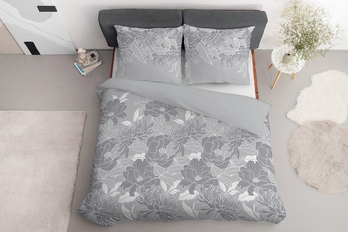 Wzór pościeli z delikatnymi białymi obrysami kwiatów na popielatym tle to prawdziwe dzieło natury przeniesione do Twojej sypialni. Ta pościel jest czystym wyrazem elegancji i romantyzmu, idealnym dodatkiem do każdej przestrzeni. Białe kontury kwiatów na popielatym tle tworzą subtelny, lecz urokliwy wzór, który przywodzi na myśl spokojne chwile w ogrodzie pełnym kwitnących roślin. Białe kwiaty stanowią delikatny kontrast wobec popielu, nadając pościeli wyjątkową harmonię i urok.