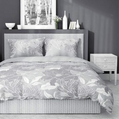 SZARA W KWIATY bawełniana pościel satynowa 160 x 200 cm