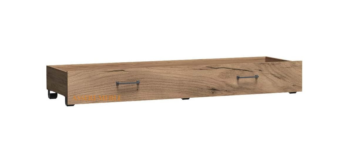 Prosta szuflada kompatybilna do łóżka ANTICA-5. Idealnie zapełni puste miejsce pod meblem. Pojemna, doskonała aby schować pościel, kołdrę, poduszki oraz inne akcesoria. Metalowe uchwyty dodają uroku szufladzie. Dostępna w wybarwieniu Kraft Złoty.