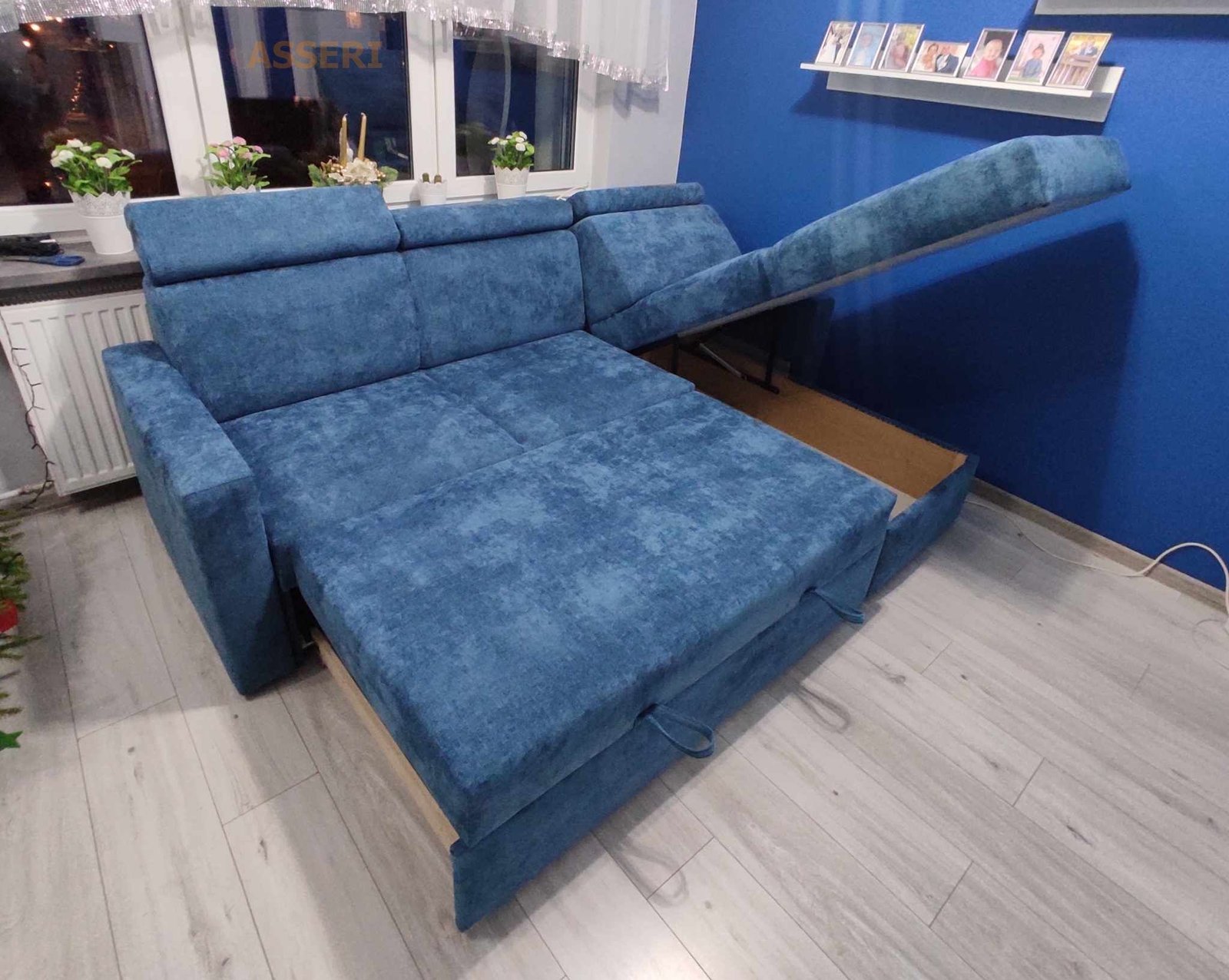 TIME narożnik z funkcją, pojemnikiem i regulowanymi zagłówkami 238 x 162 cm – NA WYMIAR