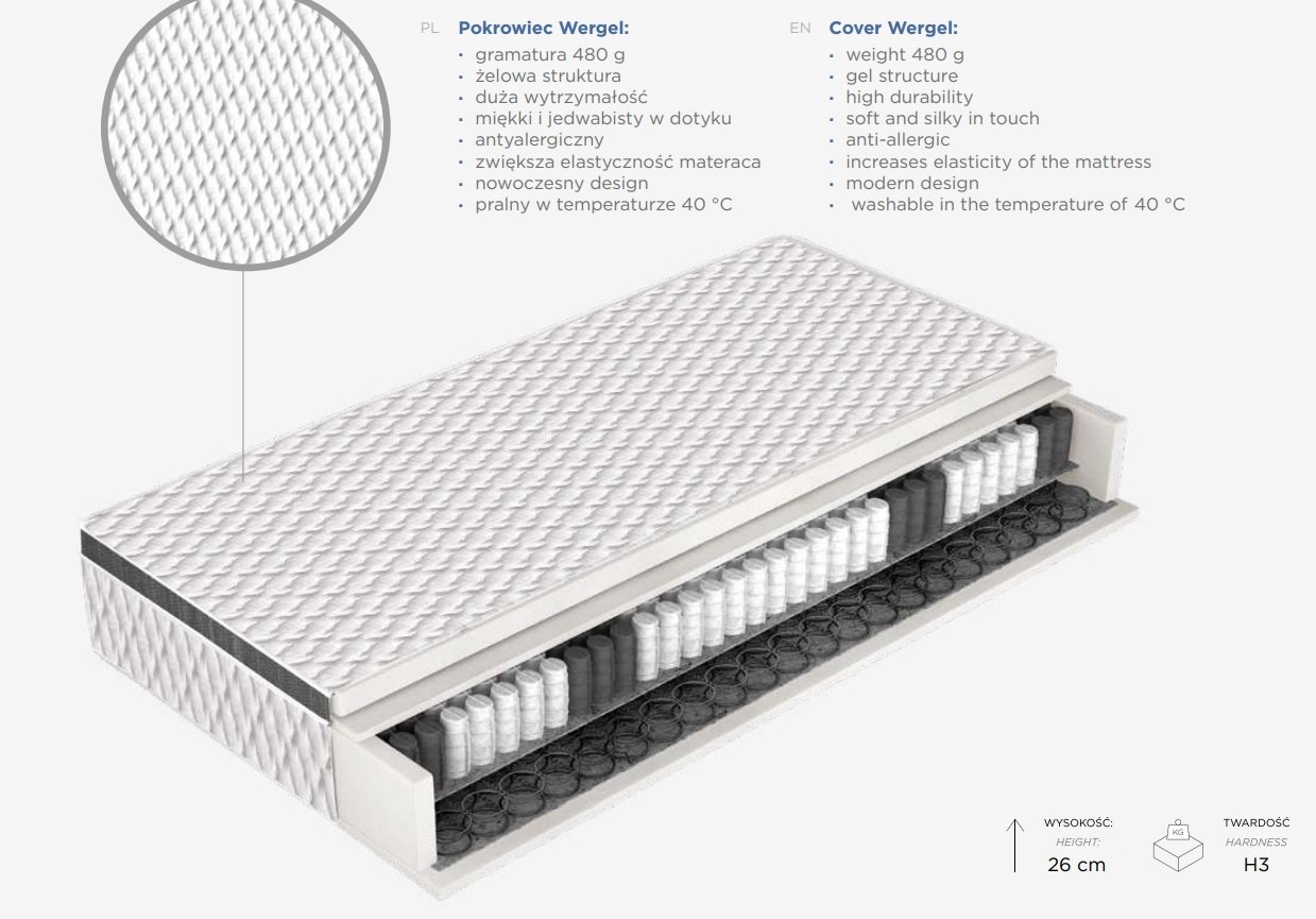 UNIQUE ZOOM – materac H3 z zintegrowanym topperem