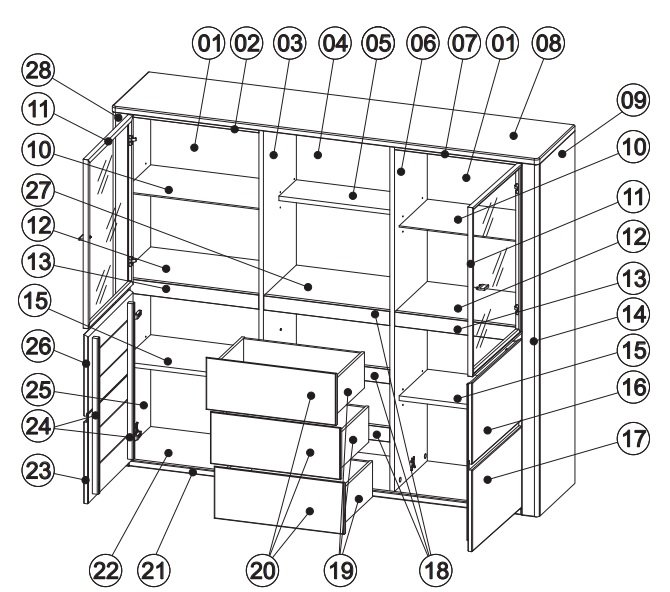 Napisz pierwszą opinię o „ORLANDO-47 szeroka witryna dębowa z szufladami i podświetleniem – bianco, bursztyn, natura 180 cm”