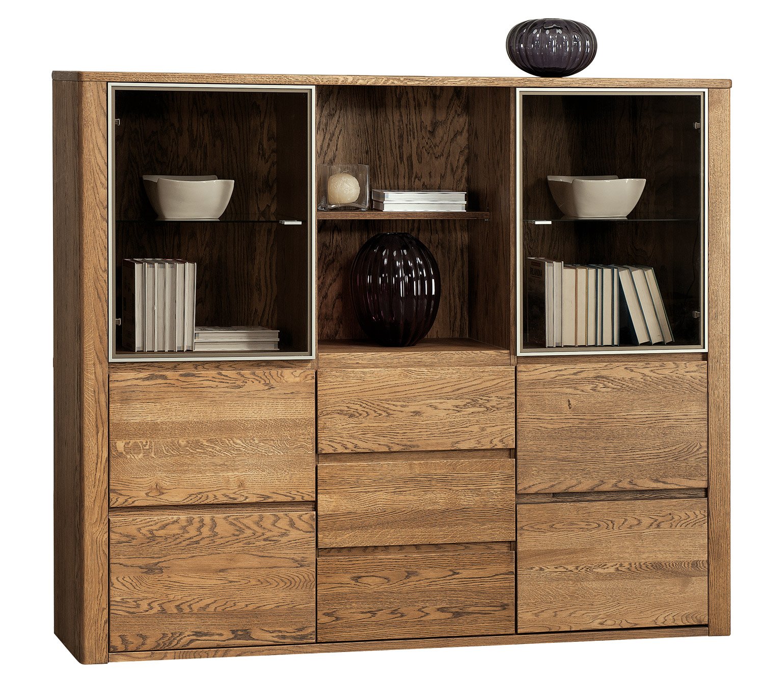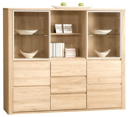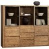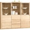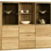 Szeroka witryna dębowa z szufladami i podświetleniem 180 cm