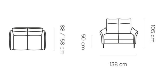 XAVI komfortowa sofa dwuosobowa z wysokim oparciem 140 cm i funkcją relax