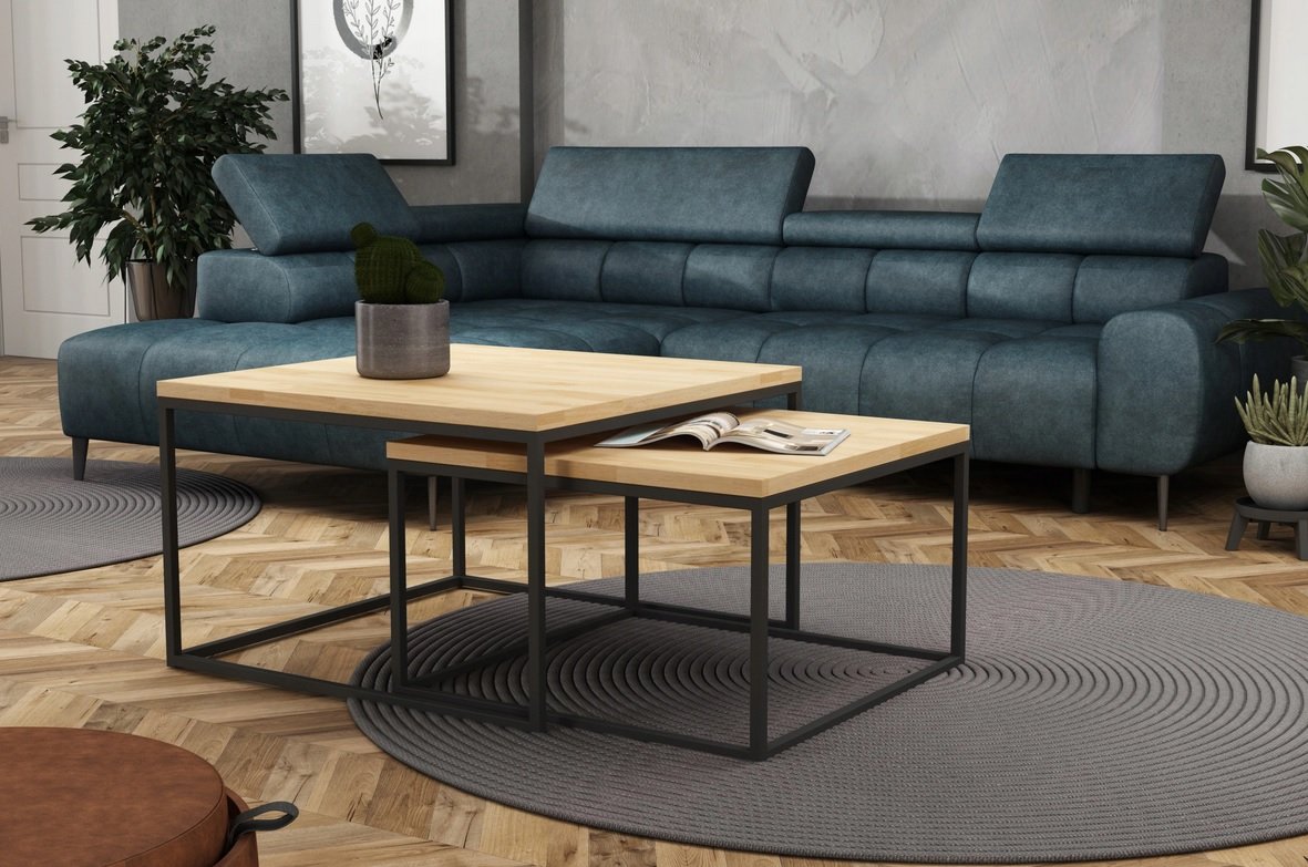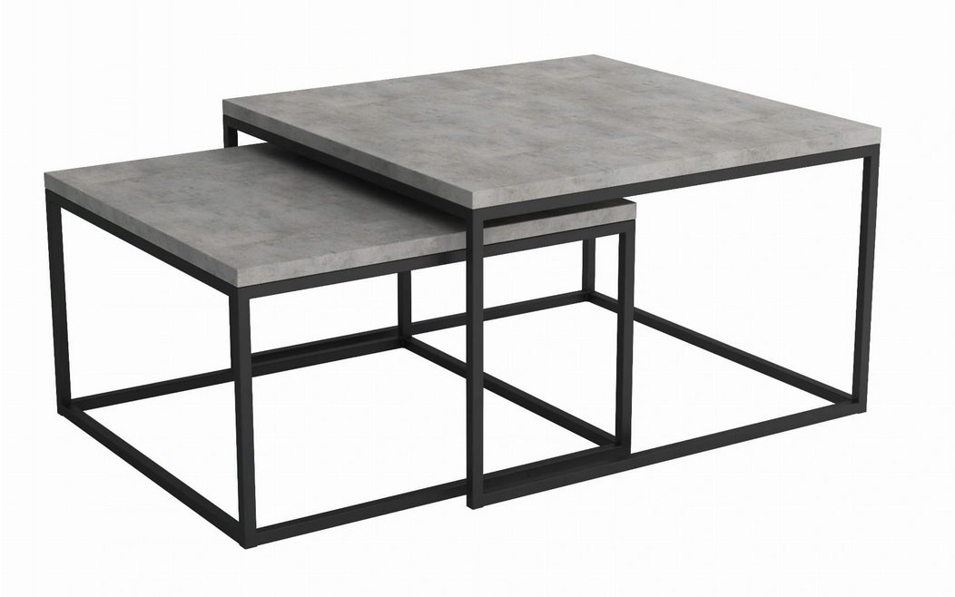 Rewelacyjny zestaw stolików z blatem z w kolorze betonu to propozycja dla wnętrz w stylu loftowym, ale również dla pomieszczeń tradycyjnych.