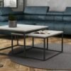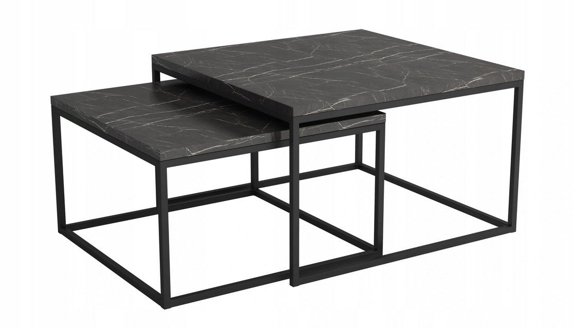 Industrialne stoliki kawowe z blatem w kolorze marmur ciemny.