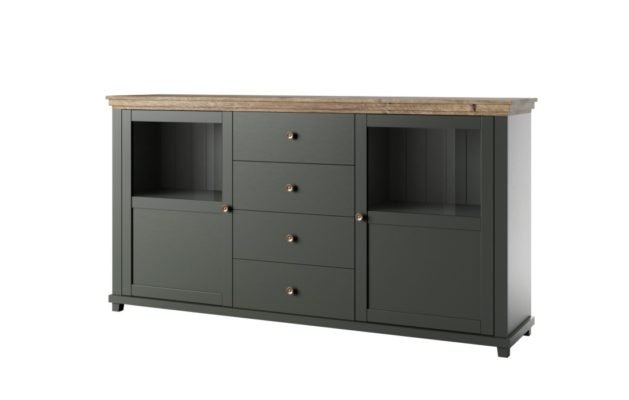Połączenie ciemnego koloru z tradycyjnym jasnym drewnem to propozycja dla miłośników elegancji. Seria doskonale sprawdzi się w pokoju dziennym, w salonie oraz w jadalni.