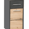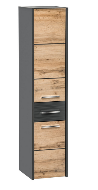 Tym, co charakteryzuje meble łazienkowe z kolekcji Ibiza White, to przede wszystkim oryginalne i odważne połączenie koloru grafitu i drewna Dębu votan. W kolekcji znajdziemy szafki o różnych rozmiarach i przeznaczeniu. Ciekawym rozwiązaniem jest szafka z lustrem, która pomieści wiele akcesoriów łazienkowych, a także dzięki oświetleniu LED będzie spełniać funkcję toaletki. Wszystkie szafki z kolekcji zostały wyposażone w prowadnice kulkowe oraz proste uchwyty. Kolekcja mebli łazienkowych Ibiza Antracyt z pewnością zainteresuje tych, którzy nie boją się niebanalnych i odważnych rozwiązań wnętrzarskich.