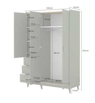 Napisz pierwszą opinię o „SCANDI 19 trzydrzwiowa szafa z szufladami na nóżkach 144 cm WYBÓR KOLORÓW”